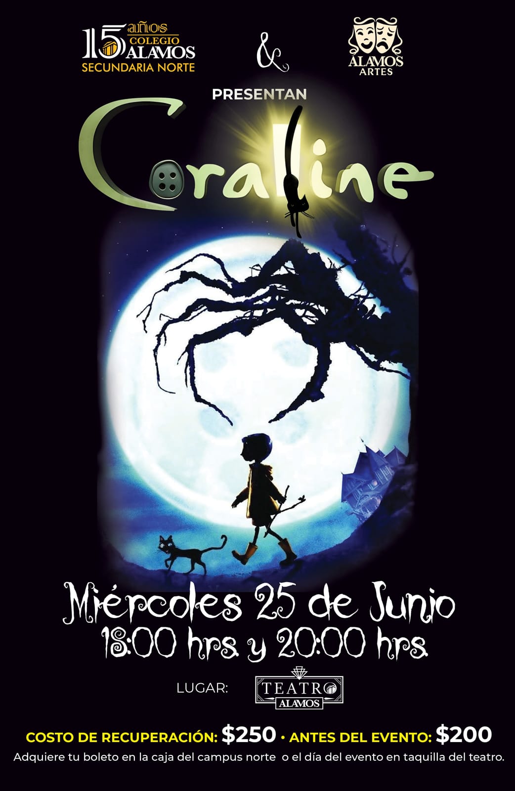 Este miércoles, los alumnos del Colegio Álamos presentan Coraline, una adaptación creativa llena de música, danza, arte visual y mucho más. ¡No te lo pierdas!