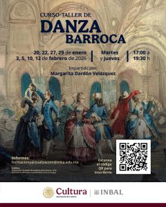 El curso es gratuito y las inscripciones se realizan mediante el código QR disponible en la convocatoria. Para mayores informes, se encuentra disponible el correo formacionyactualizacion@inba.edu.mx.