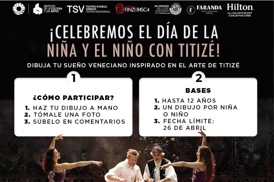 El Instituto de Cultura de Cancún lanzó una dinámica infantil para que niñas y niños participen con dibujos inspirados en “Titizé: A Venetian Dream” y ganen boletos para su función del 30 de abril.