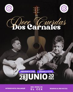 Este sábado 28 de junio a las 8:00 de la noche, el Centro Cultural Xbalamqué será escenario de una velada musical íntima y poderosa con el concierto “Doce cuerdas, dos carnales”, protagonizado por los guitarristas Javier Rojas y Alex Can.