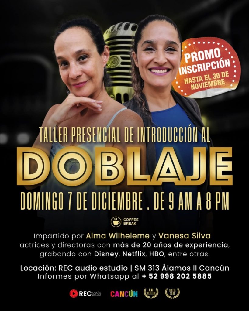 A lo largo del taller, las y los participantes podrán acercarse al proceso del doblaje desde su esencia: ejercicios de actuación, entrenamiento vocal, comprensión lectora y la experiencia de transformar un texto en interpretación frente al micrófono. Información e inscripciones se encuentra disponible el WhatsApp 998 202 5885.