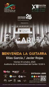 Cancún.- Una tarde llena de acordes, talento y nostalgia se vivirá este viernes 10 de octubre a las 12:00 horas en la Universidad del Caribe, con la presentación de los guitarristas Javier Rojas y Elías García, quienes ofrecerán un concierto especial que marcará el inicio del Festival Internacional de Música de Cancún.