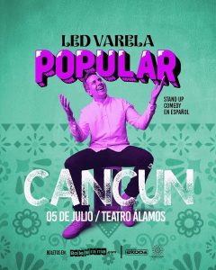 Cultura.- El escenario del Teatro Álamos Cancún se prepara para una noche de carcajadas con la llegada de uno de los comediantes más afilados del stand-up latino: Led Varela, quien presentará su nuevo show titulado “Popular” el próximo 5 de julio