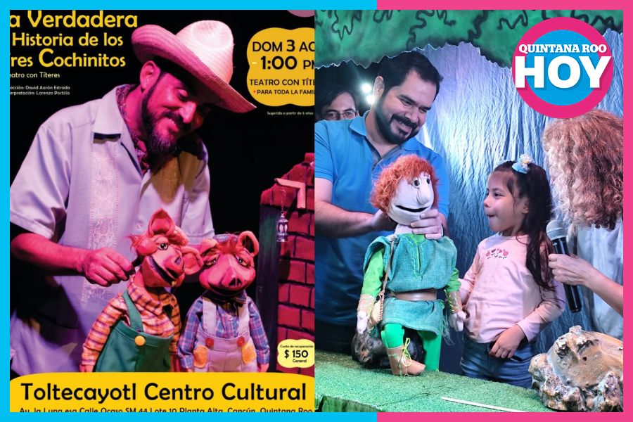 Cancún.- Una historia conocida, contada con humor, títeres y un mensaje profundamente humano. La Verdadera Historia de los Tres Cochinitos, a cargo de Merequetengue Artes Vivas, se presenta este domingo 3 de agosto en el Centro Cultural Toltecayotl con una función para toda la familia.