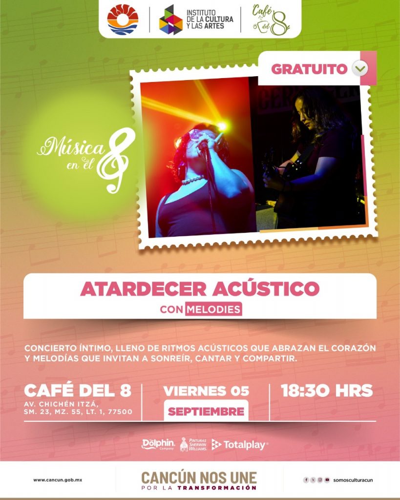 La cita es parte de los ya tradicionales Viernes de Música del Café del 8, un espacio que se ha consolidado como punto de encuentro para los amantes de la cultura, el arte y la buena convivencia en Cancún.