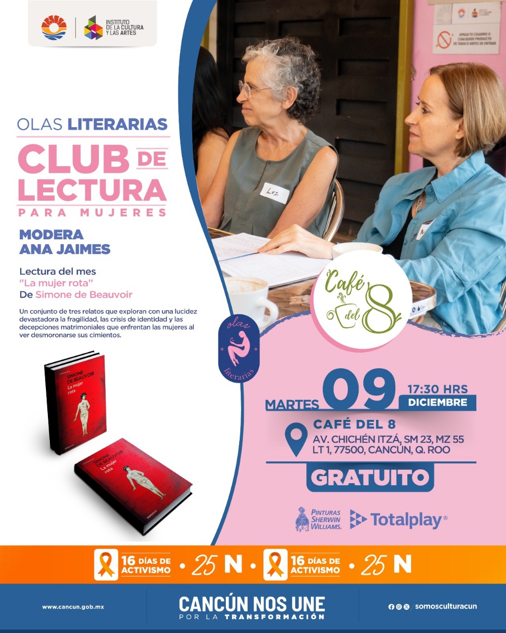 Cancún.- Café del 8 se ha convertido en un ambiente diseñado para la escucha, el diálogo y la introspección, Olas Literarias presenta una sesión especial dedicada a La mujer rota, la célebre obra de Simone de Beauvoir que ha marcado a generaciones con su mirada lúcida sobre la identidad femenina, las expectativas sociales y las grietas emocionales que atraviesan la vida cotidiana.