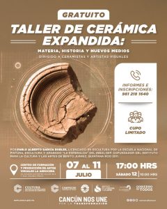 Cancún.- Del 7 al 12 de julio, el Centro de Formación y Producción de Artes Visuales La Arrocera, en Campeche, será sede del taller Cerámica Expandida: materia, historia y nuevos medios, una experiencia formativa dirigida a artistas visuales y ceramistas interesados en explorar nuevas rutas creativas a través de esta disciplina ancestral.