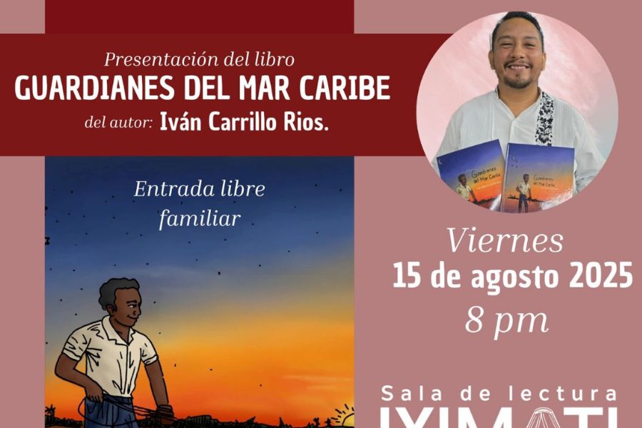 Cancún.- Este viernes 15 de agosto, el Centro Cultural Tolquecayotl, en su Sala de Lectura IXIMATI, presentará el libro infantil Guardianes del Mar Caribe, escrito por Iván Alberto Carrillo Ríos, una obra que combina imaginación, música y conciencia ecológica.