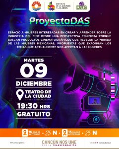 Cancún.- En un ambiente pensado para el encuentro y la escucha, ProyectaDAS se presenta como un espacio donde mujeres interesadas en el cine pueden acercarse a nuevas narrativas, aprender de la industria y dialogar desde una perspectiva feminista.