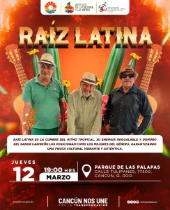 La cita es el jueves 12 de marzo a las 19:00 horas en el Parque de las Palapas, donde el público podrá disfrutar de una tarde de música que invita a dejarse llevar por la cadencia de géneros como la salsa, el son y otros ritmos que forman parte de la tradición musical latinoamericana.