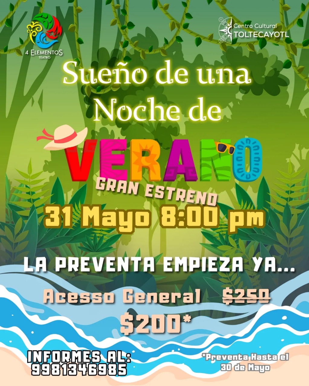 Sueño de una noche de verano se presentará el sábado 31 de mayo a las 20:00 horas en el Centro Cultural Toltecayotl, ubicado en Calle Ocaso esquina Av. La Luna, Planta Alta.