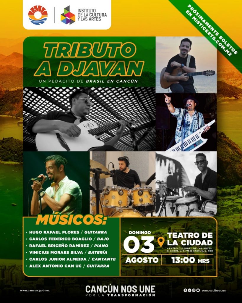 Cultura.- El Teatro de la Ciudad de Cancún se prepara para recibir una experiencia musical única a cargo de reconocidos talentos locales, quienes rendirán homenaje a uno de los más grandes exponentes de la música popular brasileña: Djavan Caetano Viana.