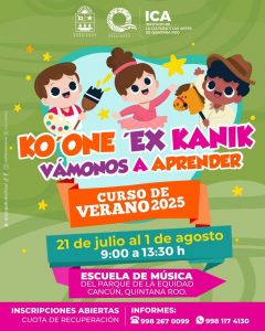 Cancún.- La Escuela de Música del Parque de la Equidad abre sus puertas este verano con una propuesta única: un curso intensivo que invita a niñas y niños a vivir la música desde la experiencia, el juego y la creación.
