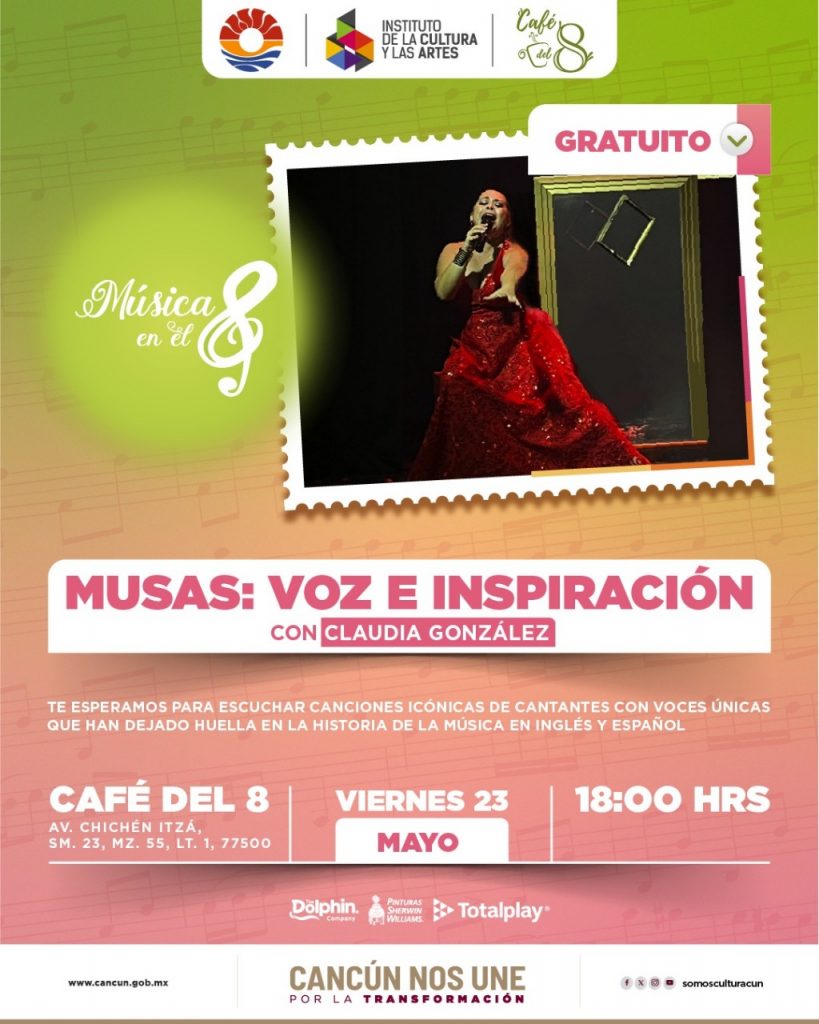 Cultura.- Este viernes 23 de mayo, vive una noche mágica en el Café del 8 con “Musas: Voz e Inspiración”, un emotivo concierto donde la música y las emociones se unen para rendir homenaje a las grandes divas que marcaron historia con sus voces únicas.