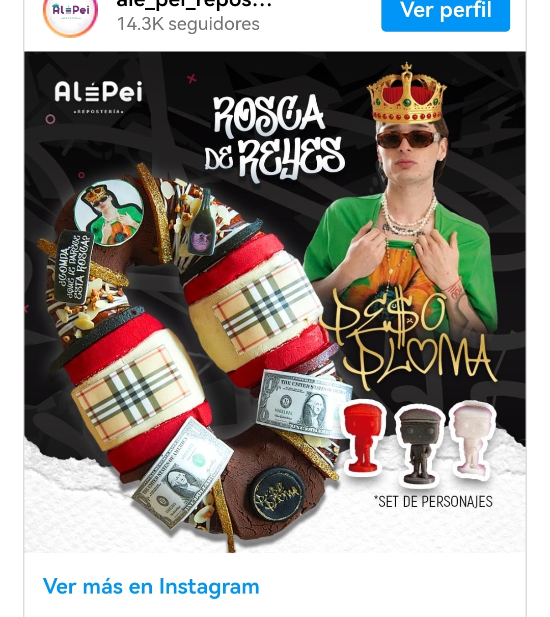 Por otro lado, la misma pastelería sacó otra Rosca de Reyes temática que llamó la atención de miles de internautas, está inspirada en Peso Pluma y tiene decoraciones alusivas a la “Doble P” como dólares, la foto del cantante, de una botella de champagne y la frase: “¿Compa, qué le parece esta rosca?”.