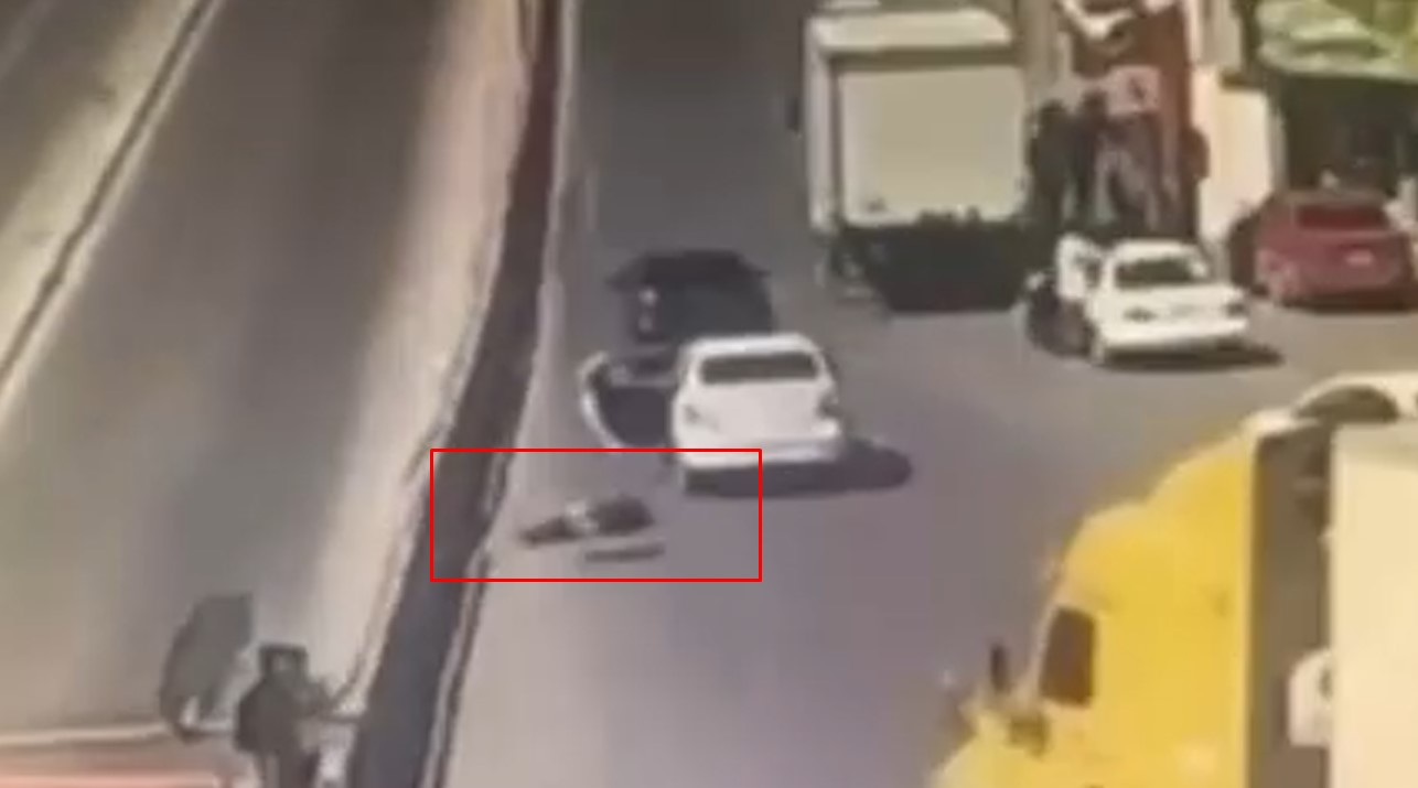 En el video, captado por el Centro de Emergencias y Respuesta Inmediata (CERI), se observa a la víctima cuando salta del automóvil en movimiento para escapar y cae en la carretera. Se observa que un tráiler se detiene para no atropellarla.