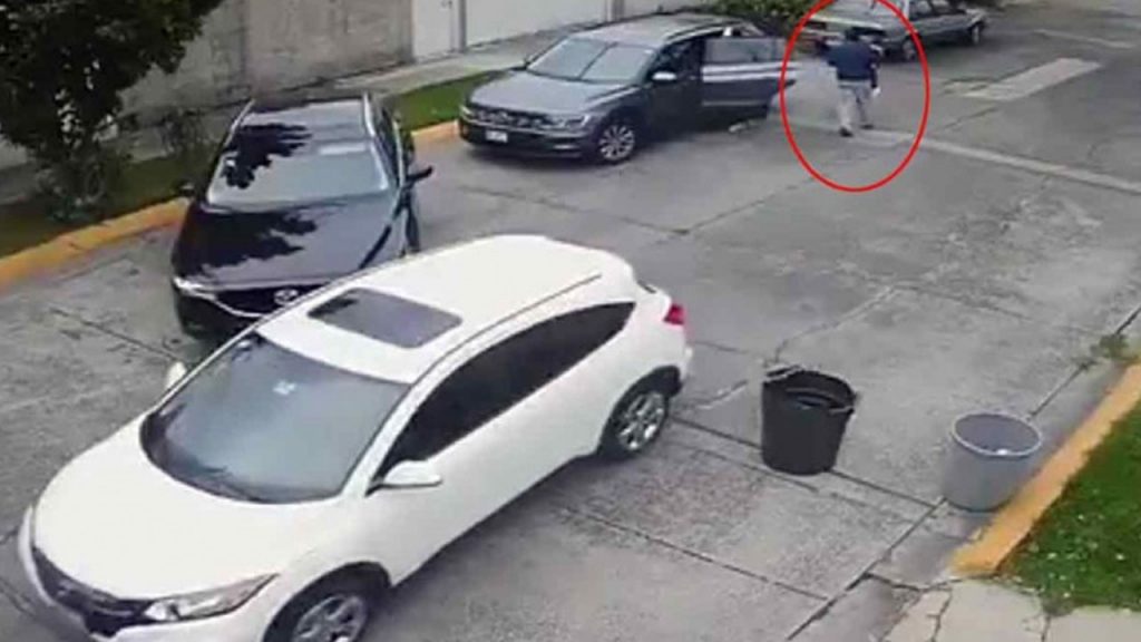 En el video que circula en redes sociales se observa que el conductor toma a su hija en brazos mientras dos sujetos abordan el vehículo, uno de ellos sube de lado del conductor y otro más en la parte trasera, para escapar en él.