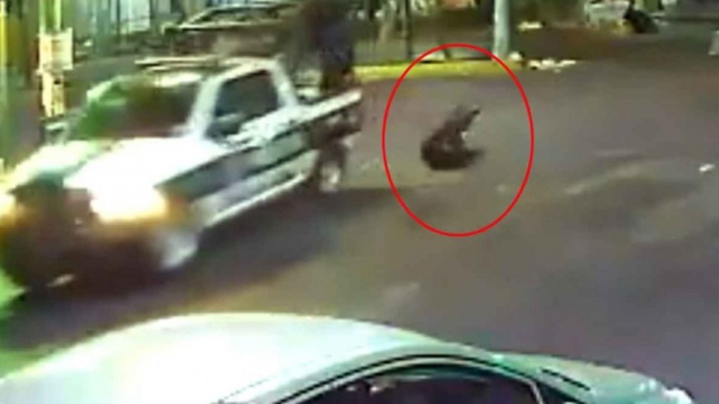 CIUDAD DE MÉXICO.– Una cámara de vigilancia captó el momento en el que un elemento de la Secretaría de Seguridad Ciudadana (SSC) cayó de una patrulla.