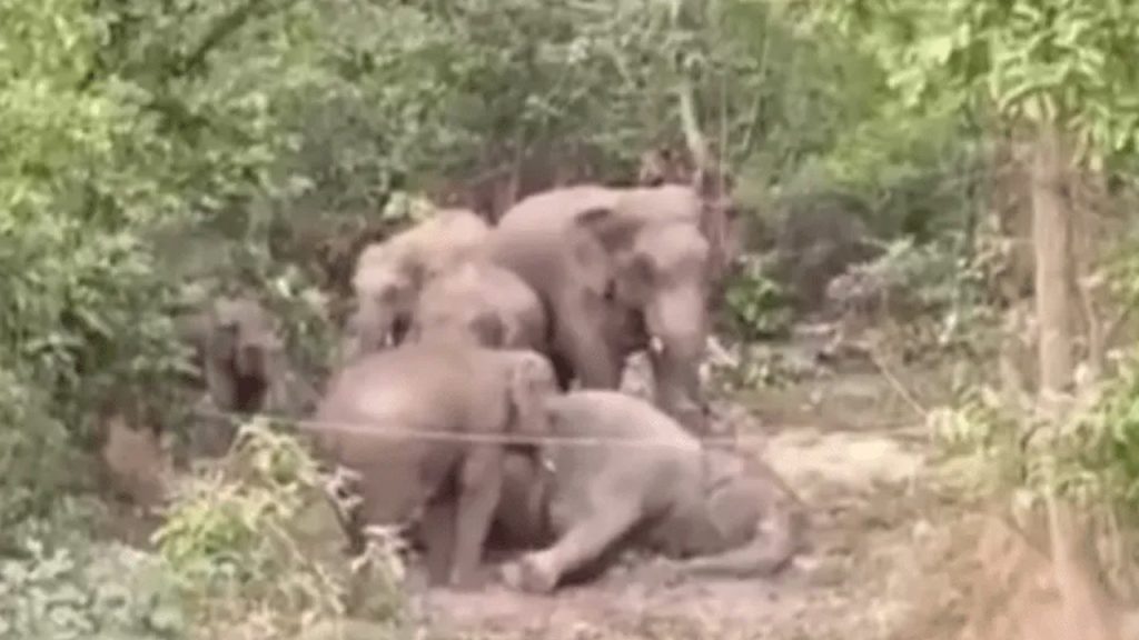 Un grupo de turistas logró captar el conmovedor momento cuando una manada de elefantes se reunía para despedir a uno de sus miembros muerto, en un Departamento Forestal de Chhattisgarh, India.