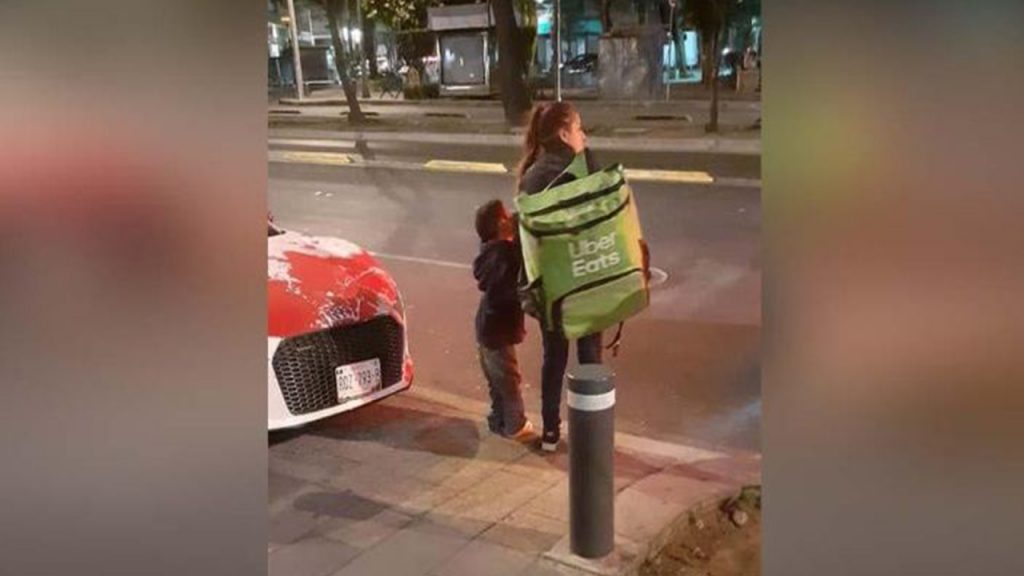 A través de las redes sociales se hizo viral una inspiradora foto que conmovió a los usuarios. En la misma se muestra a una mujer repartiendo pedidos de Uber Eats en compañía de un niño que se cree que es su hijo, ambos iban caminando.