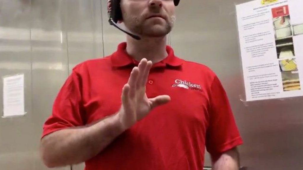 Pero Coleman aprendió lo contrario durante una confrontación con su gerente, quien le dijo que eliminara cualquier cosa sin el logotipo de Chicken Express, según muestra el video.