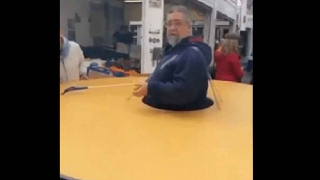 A través de redes sociales se compartió el video de un hombre italiano, el cual apareció por el mercado de Testaccio, en la ciudad de Roma portando un gigantesco círculo de cartón colocado en la cintura para asegurarse que el resto de personas estaban a la distancia de seguridad recomendada.