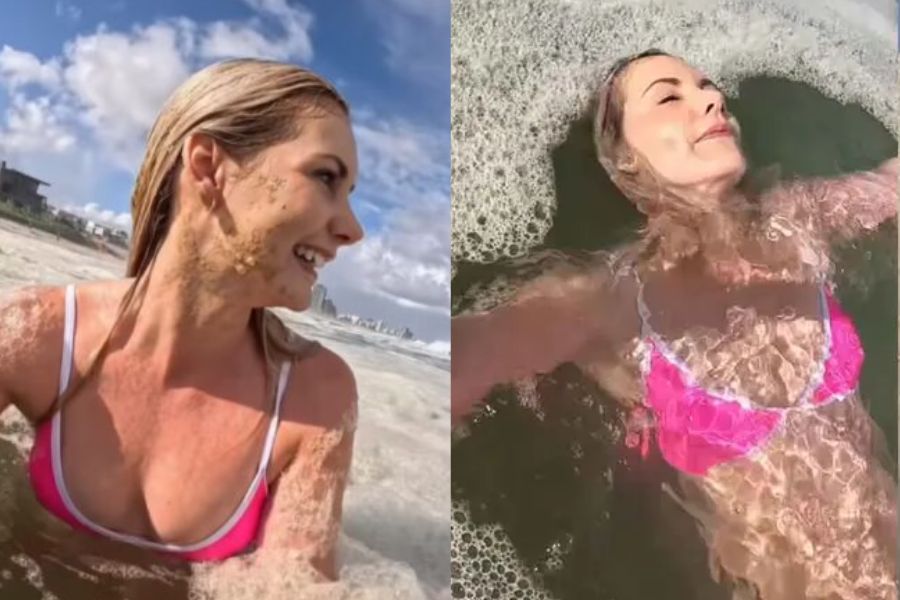 Michelle, conocida en redes por su estilo de vida extremo y sus videos acuáticos, grabó el momento en una playa de Ciudad del Cabo. En las imágenes se la ve riendo, flotando entre la espuma y declarando: “¡Está salada!”, mientras incluso prueba el agua con sus dedos.