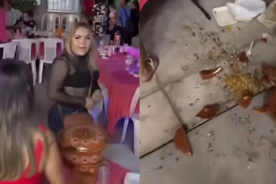 La negativa desató una reacción violenta: la mujer lanzó al suelo una cazuela de barro llena de comida, rompiéndola en pedazos, mientras lanzaba insultos a los presentes. Testigos incluso aseguran que estuvo a punto de golpear a una mujer embarazada, lo que provocó la indignación inmediata de varios asistentes.