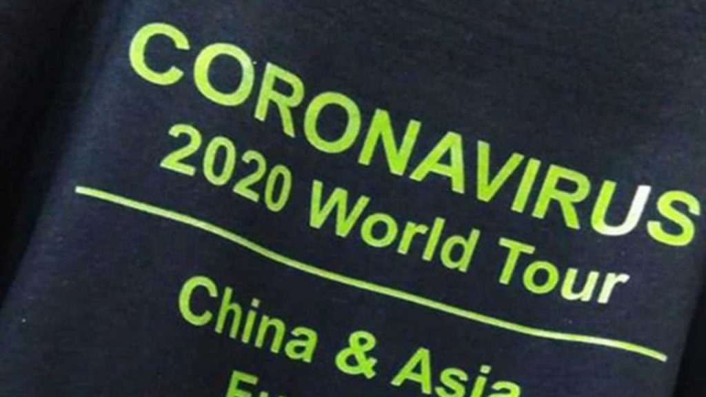 En la parte de la espalda dice la leyenda ‘Coronavirus 2020 World Tour’ y además se enlista varias regiones donde ya se han detectado casos.