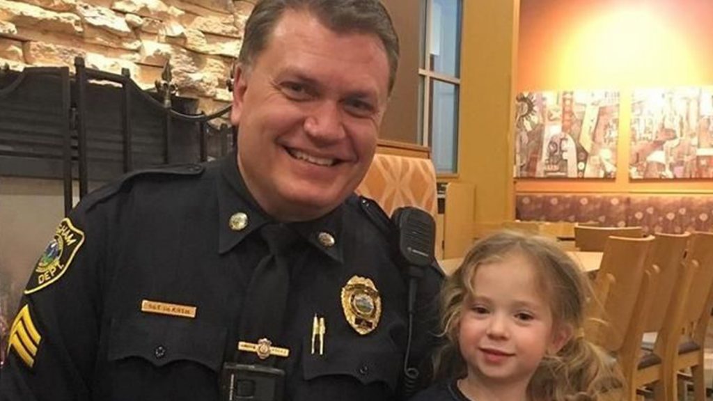Los hechos ocurrieron en Massachusett, EEUU, cuando el agente Steven Dearth se tomó un breve descanso para comer algo, en ese momento se dio cuenta que una niña lo miraba desde su mesa e incluso le sonrió, asi que el oficial le devolvió la sonrisa.