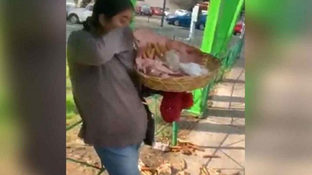 En un video compartido en redes sociales, se observa a la víctima quien viste un suéter color gris y pantalón de mezclilla sostener una canasta con algunos churros, mientras que el resto del producto está regado en el piso.