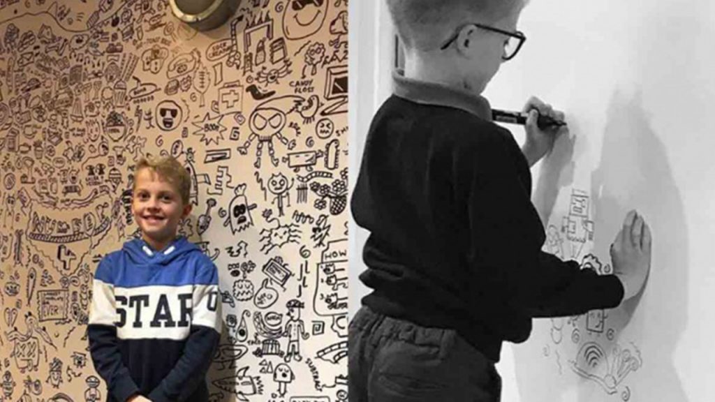 Regañan a niño por dibujar en clases; lo contratan para decorar restaurante