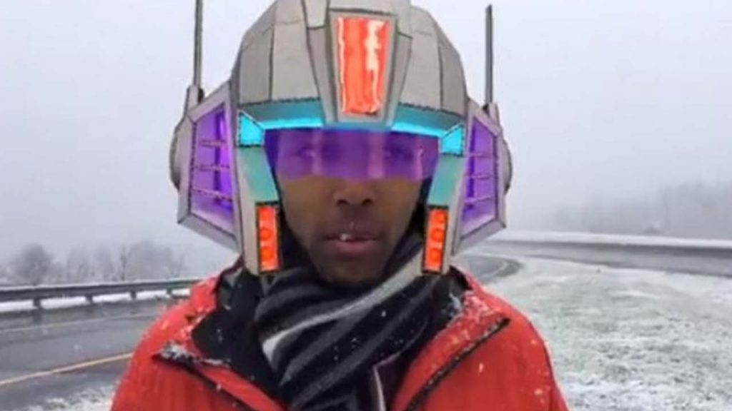 Mientras Hinton hablaba sobre las condiciones climatológicas en Asheville (ciudad donde se han presentado algunas nevadas inusuales) los espectadores atestiguaron como en el rostro del reportero aparecieron diversos elementos virtuales como orejas de perro, ojos saltones, un casco espacial o un sombrero de mago.
