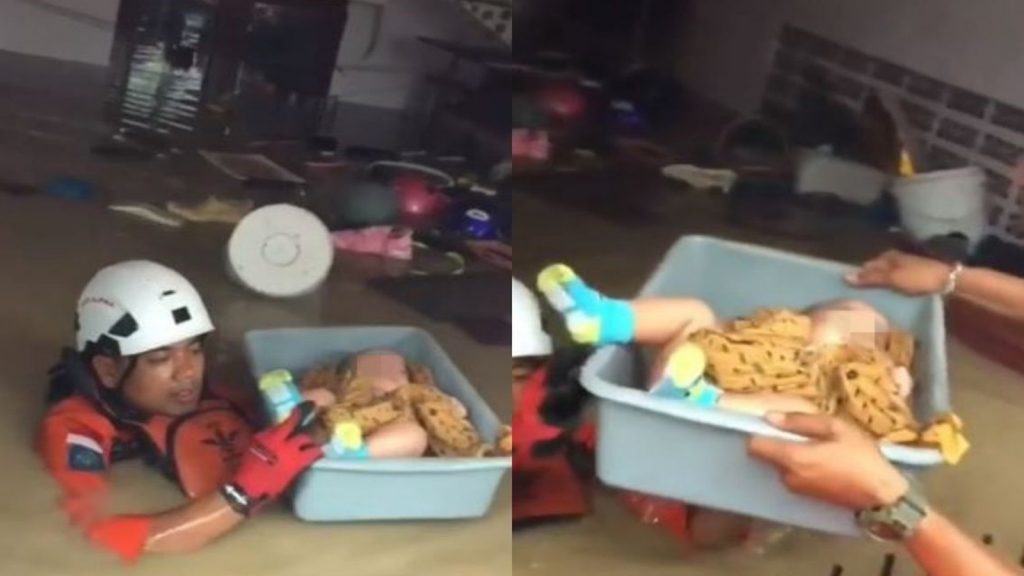 En medio de todo esto, se ha viralizado en redes sociales un video que muestra el emotivo momento en que logran rescatar a un bebé en un recipiente durante las inundaciones.