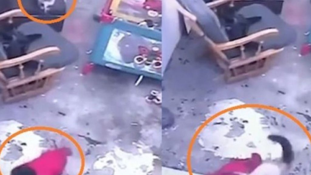 En el clip se puede ver cómo el bebé gatea hacia las escaleras y Gatúbela, atenta a cada movimiento del infante, corre a detenerlo. Aunque al parecer lo araña para hacerlo hacia atrás, al final logra que el pequeño se regrese.