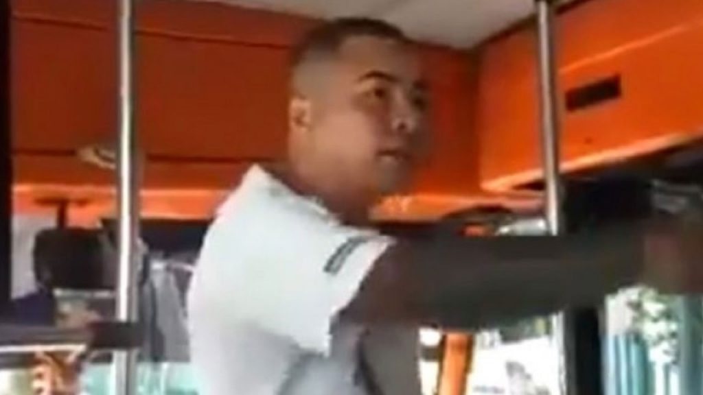 En la grabación, se aprecia a un conductor de microbús de edad media, quien presuntamente se encontraba en algún efecto de drogas.
