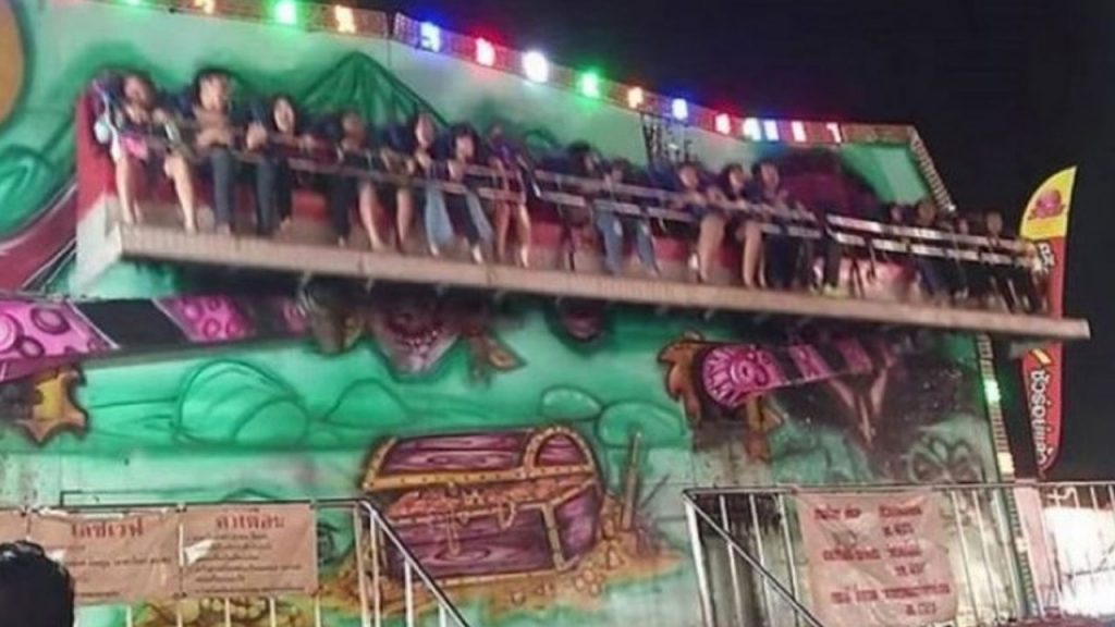 Chonburi, Tailandia.- El susto de sus vidas se llevaron varias personas que se encontraban disfrutando en una feria de Tailandia, luego de que a uno de los juegos mecánicos le fallara el cinturón de seguridad arrojando desde lo alto a los paseantes.