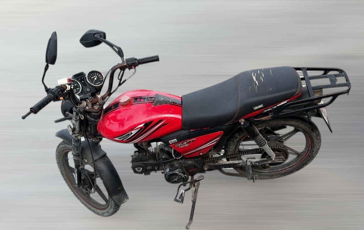 Una motocicleta marca Veloci, modelo Deus 125, color rojo con negro.