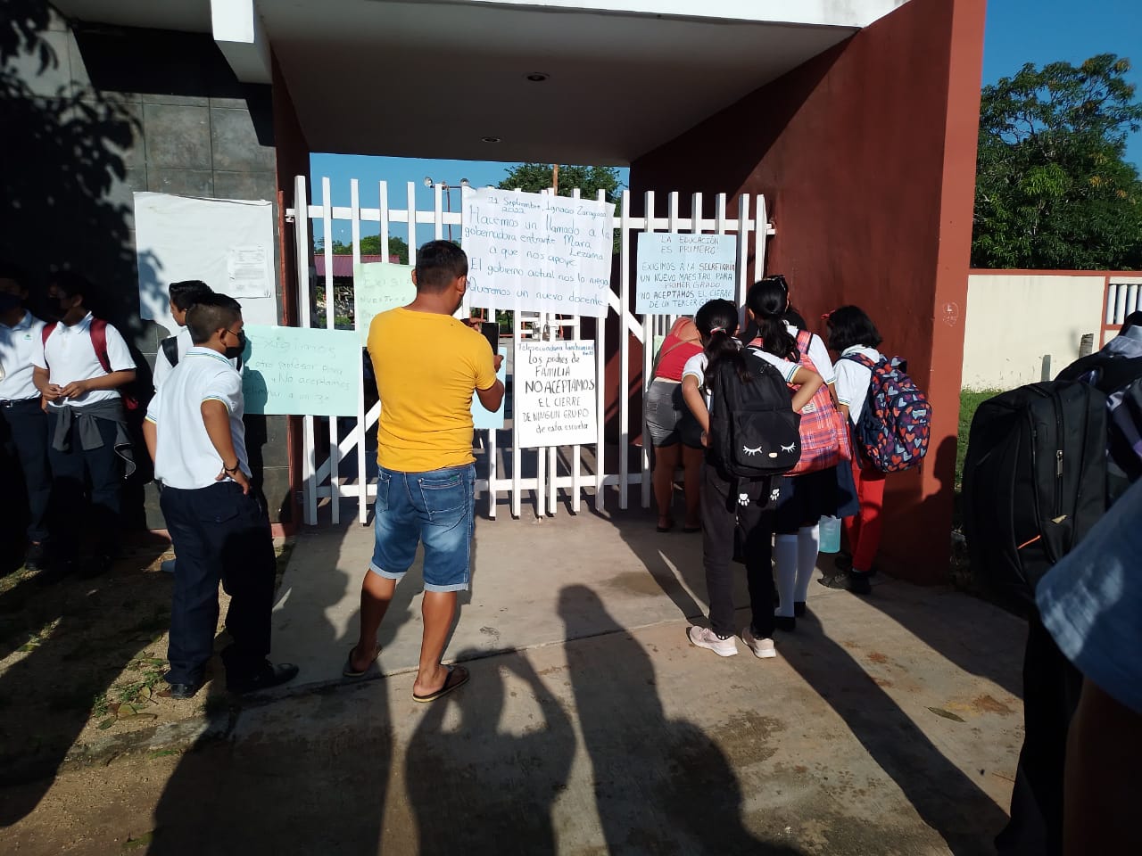 El pasado miércoles los padres de familia se manifestaron con pancartas para exigir a la Secretaría de Educación envíe un maestro para la atención de los alumnos de primer grado, grupo “C”.María Uitzil May, presidenta de la Sociedad de Padres de Familia, afirmó que realizaron un oficio dirigido a Ana Isabel Vásquez Jiménez, titular de la SEQ, detallando la solicitud de la falta de un maestro de primer grado y la permanencia de los tres grupos de terceros, porque los salones son pequeños y están construidos para un máximo de 20 alumnos, ya que por ser lugares cerrados, siguen respetando las medidas sanitarias.