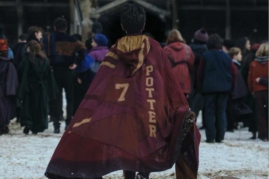 Un detalle que ha cautivado a los fans es la estética de la producción. La imagen muestra a Potter dejando huellas en la nieve mientras se dirige a un campo de Quidditch que luce más rústico y “mágico” que el de las películas, alineándose con las descripciones originales de los libros.