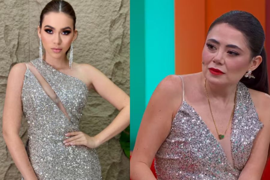 Sin embargo, la conversación rápidamente cambió de tono cuando usuarios notaron que el vestido que llevaba la actriz parecía estar al revés. Las imágenes fueron comparadas con fotos publicitarias de la prenda original —presuntamente de la firma Martha Silva— donde el escote, los flecos y la caída del vestido lucen diferentes.