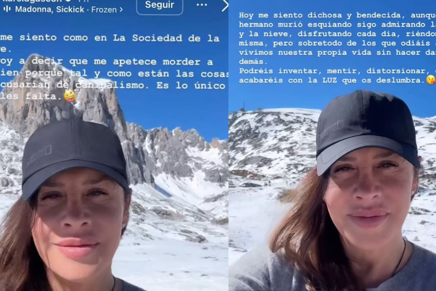 En la imagen, Gascón aparece en un paisaje cubierto de nieve y hace referencia a La sociedad de la nieve, la película que narra la tragedia de los Andes ocurrida en 1972. Esta publicación generó una ola de críticas debido a la manera en que tocó un tema tan sensible.