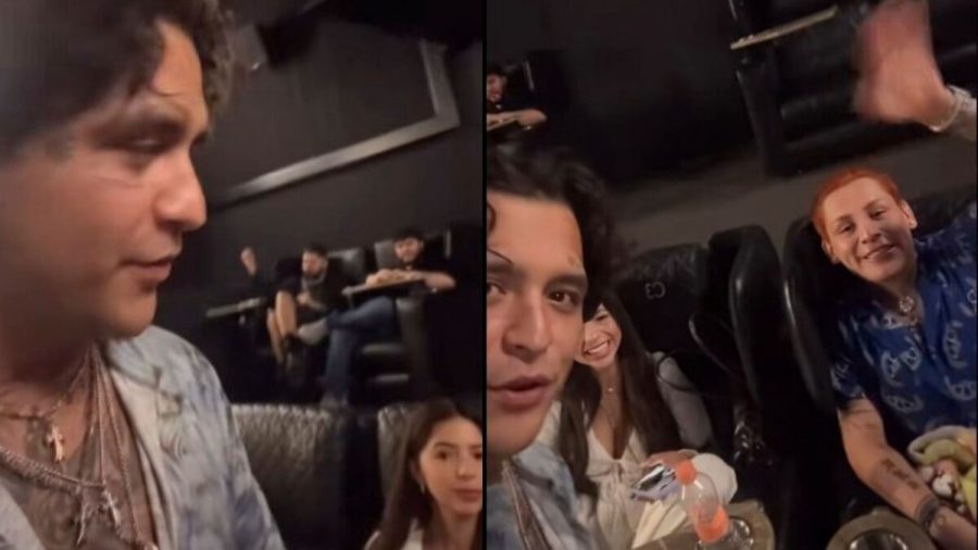 En el clip, se ve a los tres amigos preparándose para la función, destacando sus atuendos, y posteriormente a Nodal tomando el celular del influencer para grabar desde dentro de la sala. Ángela aparece sentada entre ellos, y se escucha a Nodal bromear: “Hoy venimos de Stitch, yo me puse azulito, pero mi compadre… que outfit”.