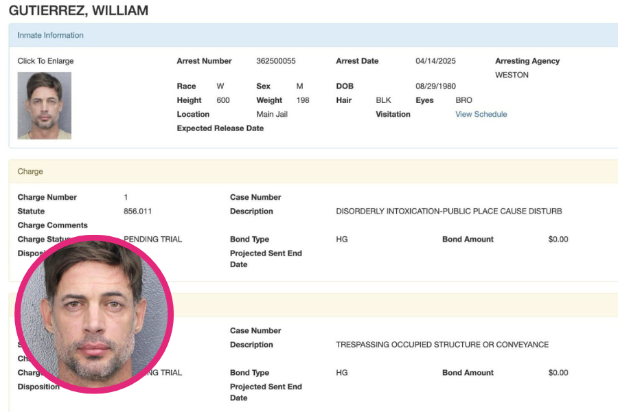 Miami. El actor cubano William Levy fue arrestado en Miami-Dade, Florida, el lunes 14 de abril de 2025, bajo acusaciones de disturbios públicos. Se le imputan cargos por alterar el orden público, allanamiento de propiedad privada y encontrarse bajo la influencia de alcohol.