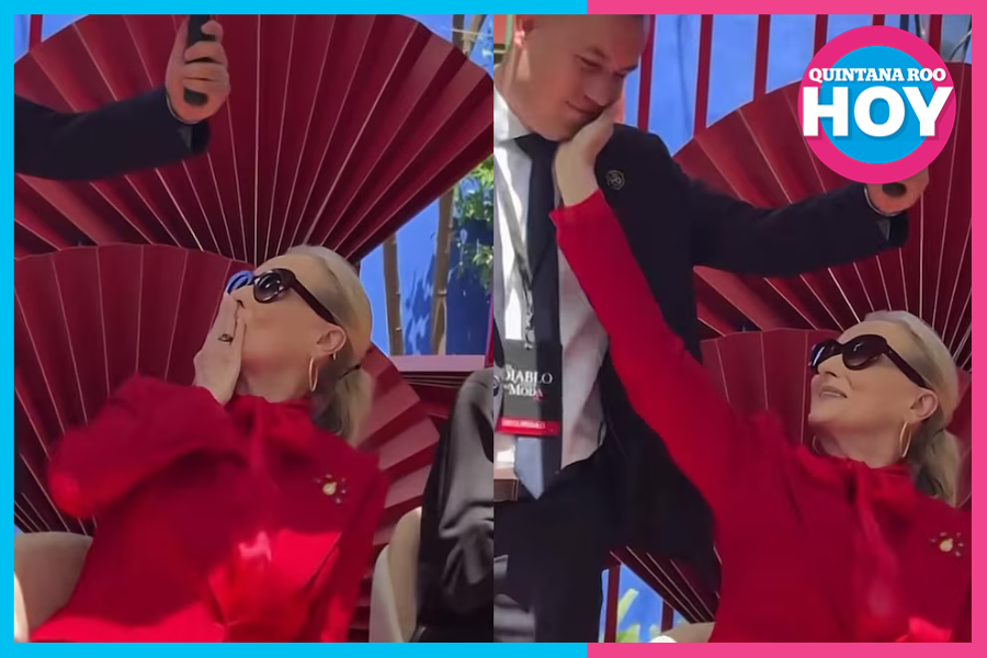 Durante una conferencia de prensa en este emblemático recinto de la Ciudad de México, la actriz —ganadora de tres premios Óscar— acaparó la atención de medios y asistentes. Vestida de rojo y con gafas oscuras, permanecía bajo el intenso sol cuando ocurrió el momento que captó las cámaras.