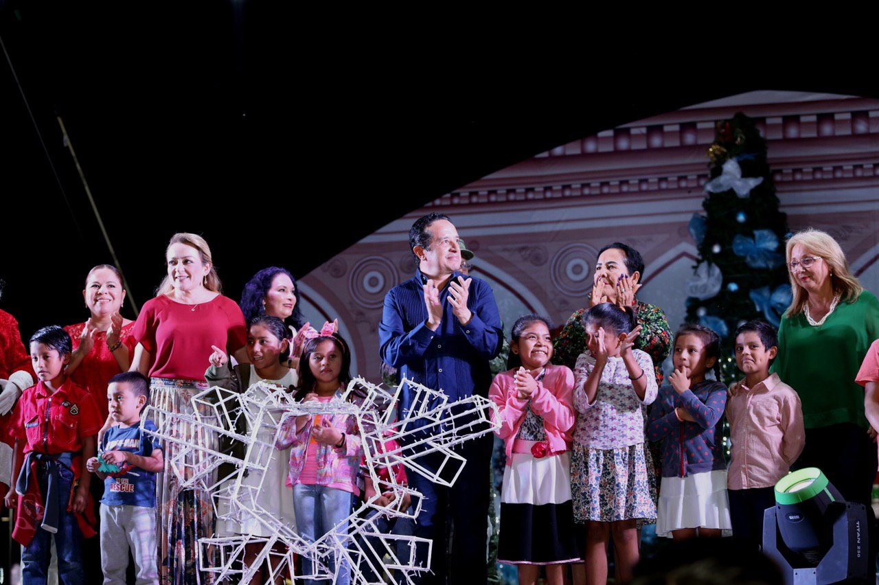 CHETUMAL.- “Esta época nos sirve para reflexionar en unidad familiar, en esa unidad que tanto necesitamos y requerimos. Les invito a trabajar en conjunto para lograr un mejor estado y vivir en un lugar en paz, con más y mejores oportunidades para la gente”, afirmó el gobernador Carlos Joaquín al encender, junto con la presidenta del DIF Quintana Roo Gaby Rejón de Joaquín, el árbol navideño en la villa del DIF.