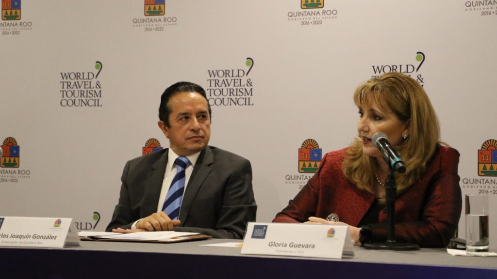 CIUDAD DE MÉXICO.- La Cumbre Mundial de Turismo se realizará en octubre de 2020 en Cancún, anunció el gobernador Carlos Joaquín junto con Gloria Guevara Manzo, presidenta y CEO del Consejo Mundial de Viajes y Turismo (WTTC, por sus siglas en inglés), en conferencia de prensa.