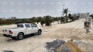CANCÚN.- Tras el paso del Huracán Zeta categoría uno por el territorio de Quintana Roo, se empiezan a notas las afectaciones que dejó en la zona de playas. Los vientos del huracán “Zeta” categoría 1 afectaron los arenales de Playa Delfines ubicada en el kilómetro 19 del bulevar Kukulcán de la zona hotelera de Cancún, la que dejó sobre los carriles de la vía de rodamiento, un espesor de 20 centímetros.
