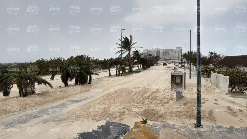 Elementos de bomberos, de la dirección de Protección Civil y de la Policía Turística trabajaron para liberar los carriles del bulevar Kukulcán y regresar la arena a su sitio, siempre bajo la vigilancia de la Zona Federal Marítimo Terrestre (Zofemat), pues esta tiene que estar limpia.