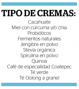 También se ofrece jengibre en polvo, cápsulas, stevia orgánica, spirulina en polvo, quinoa, café de especialidad Coatepec, té verde y té Oolong a granel.